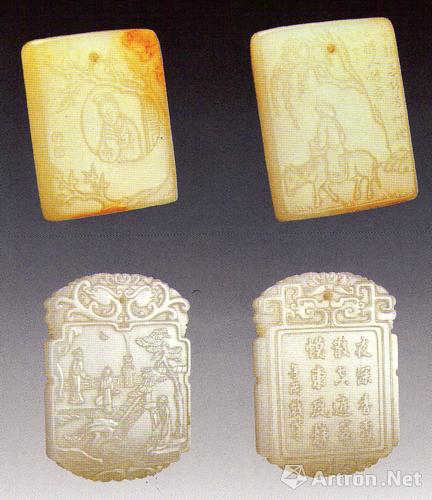 明代白玉“子刚”款人物纹玉牌(上)、清代白玉“子刚”款人物纹玉牌